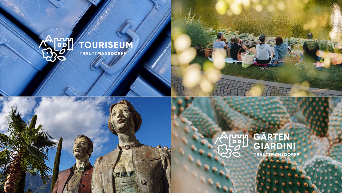 Die Gärten von Schloss Trauttmansdorff und das Landesmuseum für Tourismus, das Touriseum, sind Merans Aushängeschild für Besucher aus aller Welt – und befinden sich am selben Ort. Um neue Synergien zu schaffen und die Bekanntheit zu verbessern, wollen die beiden eigenständigen Marken in Zukunft gemeinsam nach außen gehen. Der neue Markenauftritt soll die gemeinsamen Aspekte in der Philosophie widerspiegeln und die Besonderheiten beider Attraktionen vereinen. Dabei muss das neue Branding zweisprachig funktionieren, denn in Südtirol spricht man deutsch und italienisch gleichermaßen.
